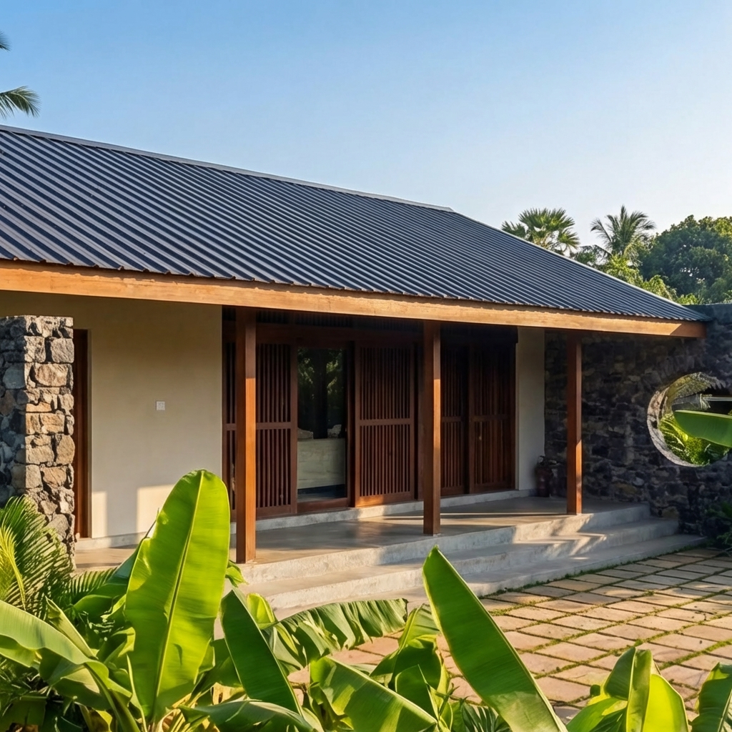 In the quiet village of Kiriwaththuduwa, we set out to prove that a limited budget doesn’t mean limited design. This project was specifically tailored for a medium-income family with a clear vision: a functional, 3-bedroom home built for 6 Million LKR, utilizing their own stock of natural stone and raw timber.