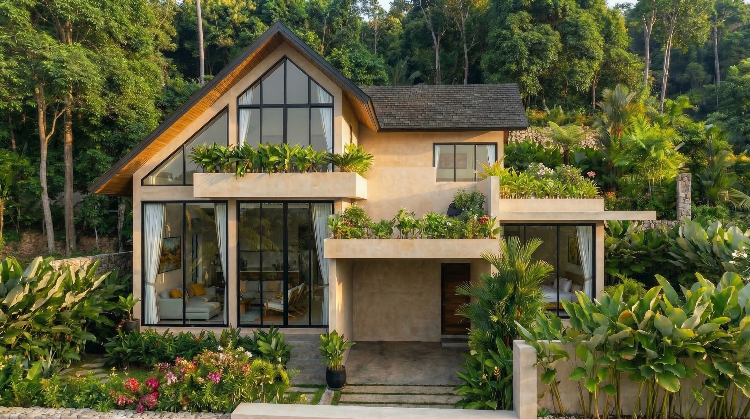 - Modern Minimalist Design: The architecture focuses on clean geometric lines, open floor plans, and large glass facades that blend the interior living spaces with the outdoor landscape.