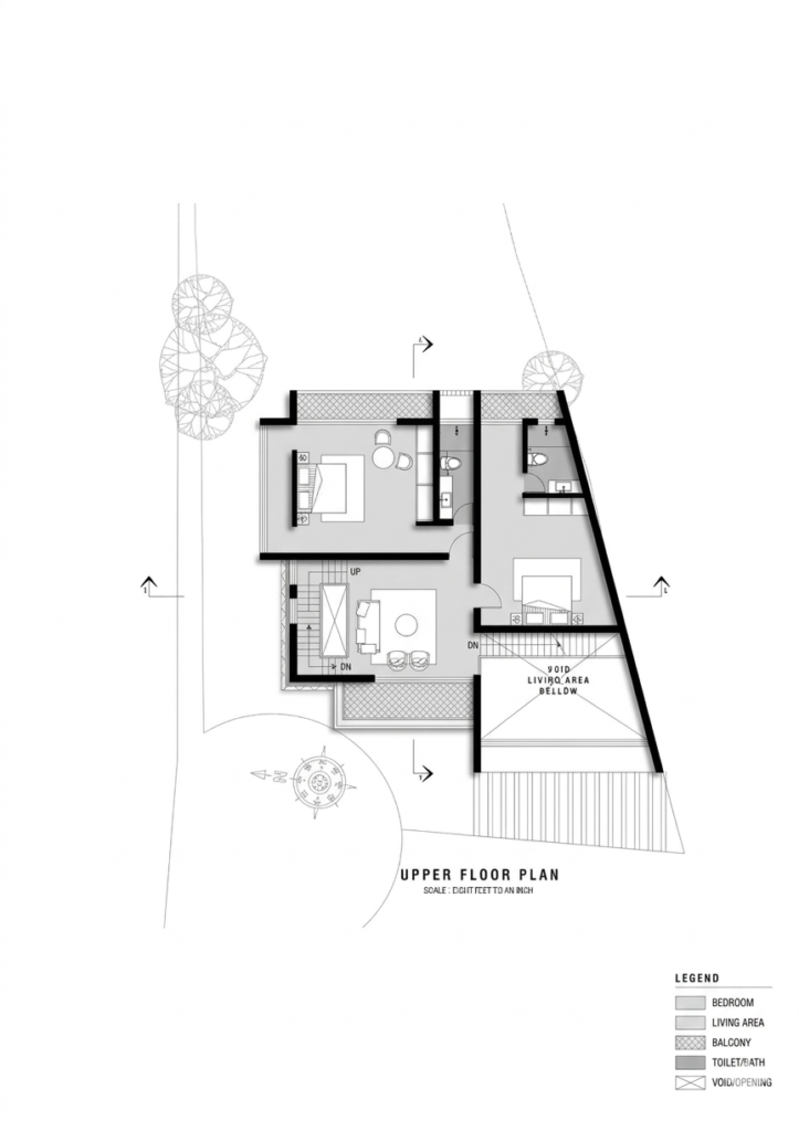 - විවෘත සැලසුම: නිවස තුළ මනා වාතාශ්රයක් සහ ස්වභාවික ආලෝකය ලැබෙන සේ විශාල ජනේල සහ උස් සිවිලිම් සහිතව මෙය නිර්මාණය කර ඇත.